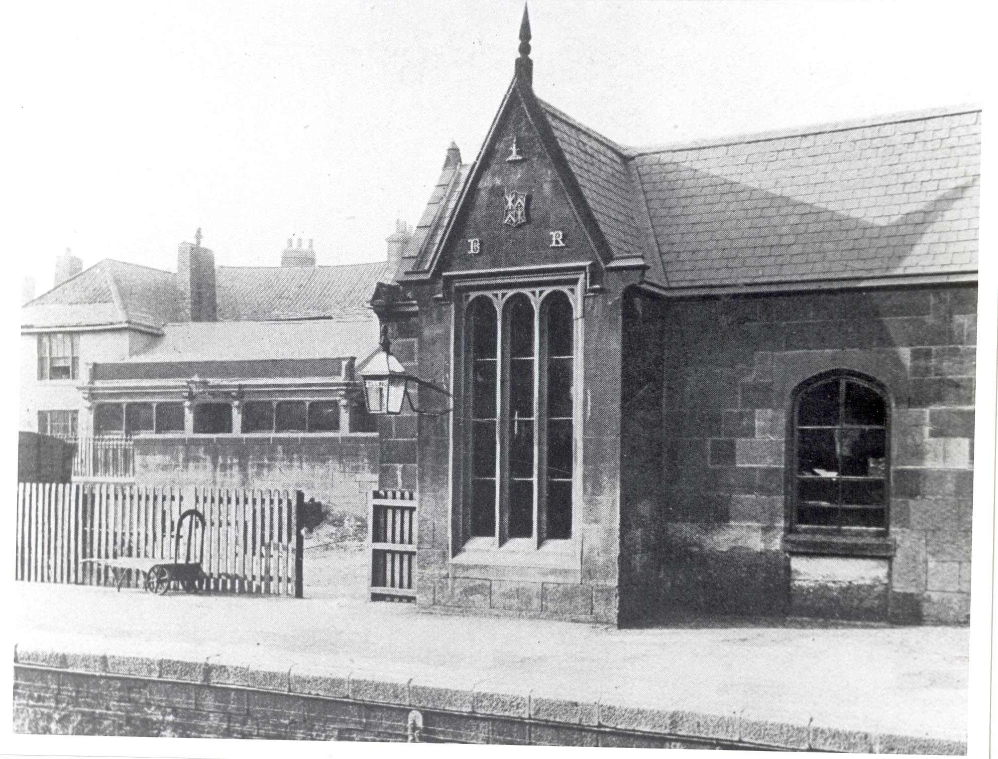 Disused stone built station of 1842 on the Brandling Junction Railway opened in 1839. A small chapel-like station with a tall narrow projecting cross gable having triple lancet windows, above which is the Brandling family crest and the prophetic initials 'BR'. Towards the end of 1842, Joseph Colthurst, the B.J.R. manager, was able to report that "the Felling Station House had been contracted for at £175 and will be completed in 6 weeks from the 7th inst.". Thus the building was probably completed in December 1842 or January 1843. The old Felling station remained in use until c.1896, when the railway between Gateshead and Pelaw junction was widened from two tracks to four, and a much larger station was opened on an island platform between the two new tracks. LISTED GRADE 2