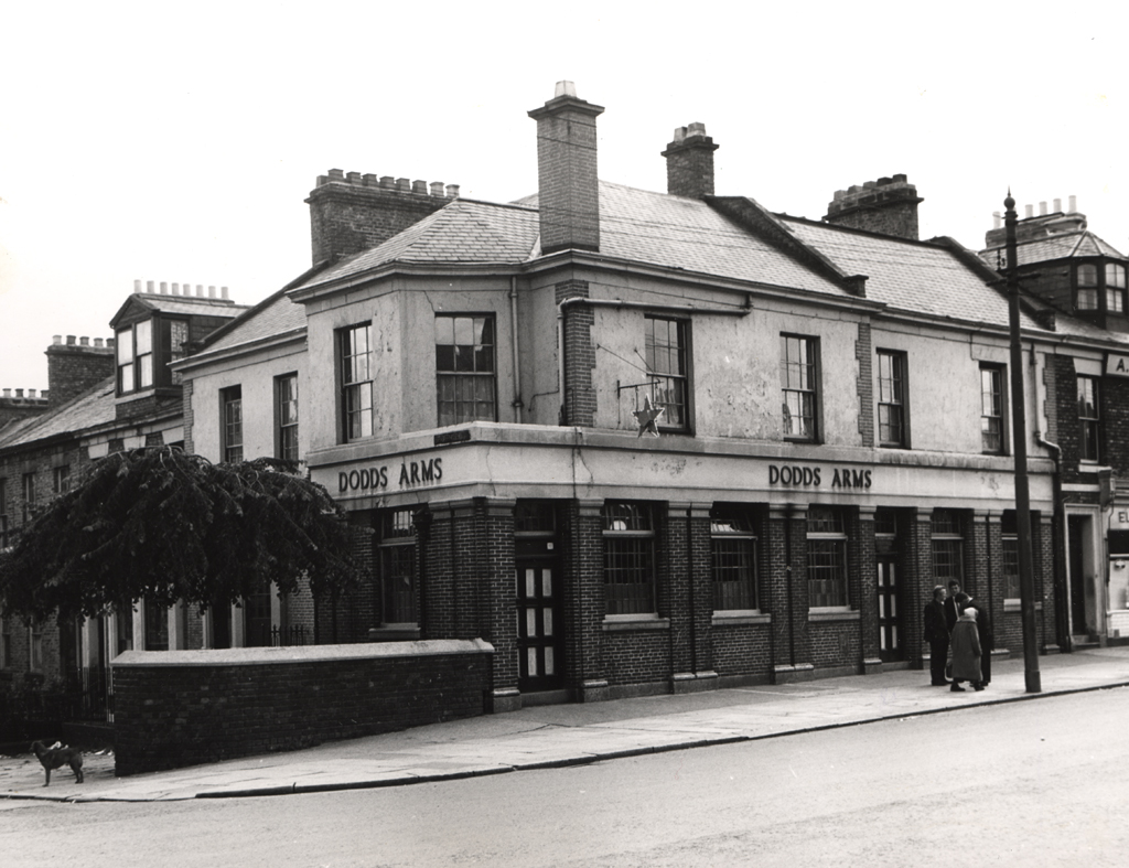 Shown on Ordnance Survey second edition. In the 1870s the Dodds Arms had ' a large bar, news room, parlour, two kitchens, two cellars, a long room upstairs, back bedroom and two attics'. It was aquired by Newcastle Breweries 1892 and was rebuilt by the company in 1932. Closed in 1993 when its licence was transferred to the Groat House in the city centre.