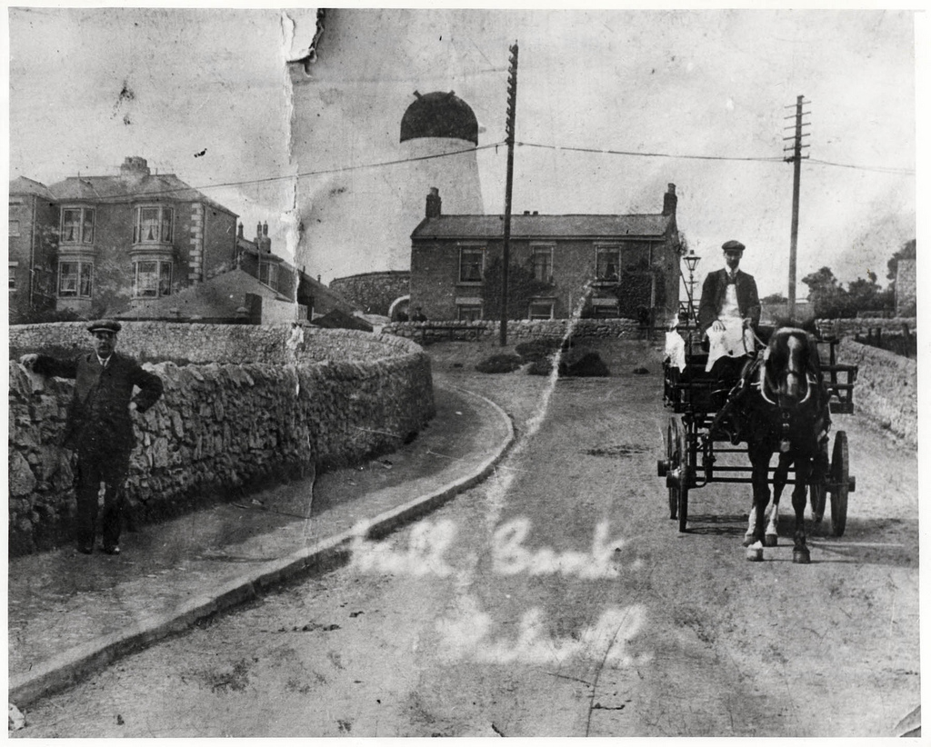 This is the most complete windmill in the region. Built in 1821 on the site of a previous mill, it remained in use until 1949 although it had lost its sails long before then. A gas engine installed c.1900 powered the stones until closure. The base of the mill is cylindrical, the large diameter set into sloping ground. The base occupies two floors and supports a tapering 4-storey tower of smaller diameter so that the base also forms a reefing stage. The base and tower, both of attractively weathered magnesian limestone are a special possibly unique feature being an extension of the podium design at Cleadon. Internally the first floor contains a dressing machine and a small alcove office with fireplace. The second floor houses the underdrives to two pairs of millstones with 3 ball governor operating on both pairs of stones together with a free standing belt driven pearl barley machine. The third floor has 2 pairs of millstones, the fourth is empty and fifth gives access to the cap. The cap is hemispherical; its framing supports an iron windshaft with wooden brake wheel, iron cross-end and 4 sails. Some external restoration was undertaken by Sunderland Corporation in the 1950s and since the early 1980s Tyne and Wear Industrial Monuments Trust has stabilised the structure, reintroduced the floor levels and staircasing, reopened some blocked openings, installed new doors and windows, renewed the timber sail framework and reconstructed a non-operational fantail. LISTED GRADE 2
