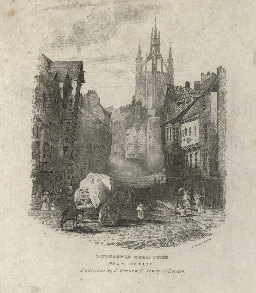 In The Side there were shops for merchants, drapers and other trades. Bourne describes the street as a very great descent, narrow in width, from the Head of it to Castle Stairs, where it opens out in a spacious breadth into Sandhill. It had shops of merchants, goldsmith's, milliners, upholsters etc on either side. The east side of the street from the upper part to Allhallow Pant (HER 6529) was called Cordiner or Cordwainer Rawe. Gray reports that in the middle of The Side (presumably near Dog Leap Stairs) is an ancient stone house, an appendix to the Castle, which belonged to the Lord Lumleys (see HER 6591). According to Bourne, the tenements in The Side supported the chantries of St Catherine, SS Peter and Paul, St Cuthbert, in the church of St Nicholas. Welford describes a house once belonging to the nuns of St Bartholomew on the west side of The Side.