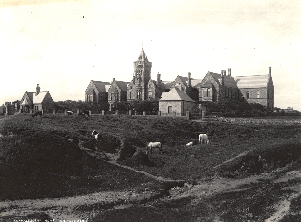 Located at Whitley Links. Opened on 14th September 1869 by her Grace the Dowager-Duchess of Northumberland. A stone building arranged on a pavilion plan, consisting of a central block with a corridor at right angles with projecting day and night sleeping rooms. There were open spaces in-between the rooms to provide ventilation and light. The building is raised several feet above ground level, approached by an elevated terrace with steps and an inclined roadway. The home held 140 patients (100 males and 40 females). It stood in beautiful gardens.