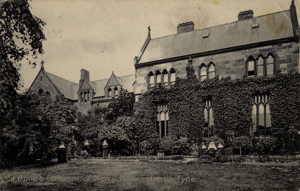 for St. Anne's Convent. Coursed squared sandstone with ashlar dressings; roofs of